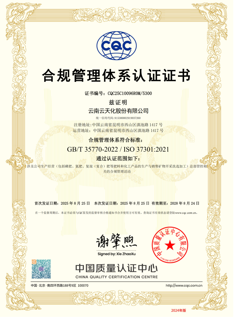 公司于1997年7月由云天化集團(tuán)有限責(zé)任公司獨(dú)家發(fā)起組建并在上海證券交易所掛牌上市(證券代碼:600096),目前旗下?lián)碛?0余家分子公司,在云南、重慶、內(nèi)蒙等10余個(gè)省市建有生產(chǎn)基地,在中東、東南亞等地區(qū)設(shè)立了銷售公司,銷售網(wǎng)點(diǎn)分布于世界各地。目前,公司資產(chǎn)總額近600億元,營業(yè)收入超600億元。2021年,公司被國務(wù)院國資委點(diǎn)名為國企“改革尖兵”,入選全國供應(yīng)鏈創(chuàng)新與應(yīng)用百強(qiáng)示范企業(yè);2022年,公司入選全國國有重點(diǎn)企業(yè)管理“標(biāo)桿企業(yè)”,獲“國務(wù)院國資委國有企業(yè)公司治理示范企業(yè)”榮譽(yù)稱號(hào),被評(píng)為“全國供應(yīng)鏈創(chuàng)新與應(yīng)用百強(qiáng)示范企業(yè)”;2023年,公司位列肥料企業(yè)50強(qiáng)排行榜第一,位居中國石油和化工企業(yè)500強(qiáng)排行榜“獨(dú)立生產(chǎn)經(jīng)營企業(yè)”第12位;公司作為云南唯一一家國有企業(yè)入選國務(wù)院國資委地方“雙百企業(yè)”標(biāo)桿企業(yè)名單。
