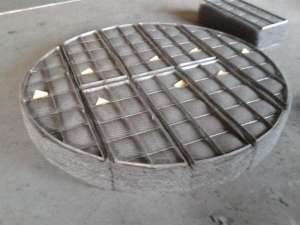 下裝式絲網(wǎng)除沫器是一種氣液分離裝置。氣體通過除沫器的絲網(wǎng)墊,可除去夾帶的霧沫。下